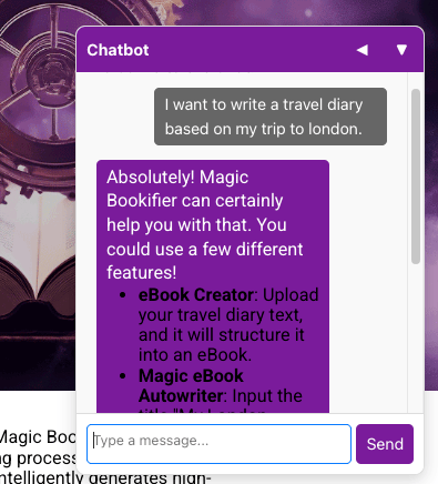 Our new Magic Bookifier chatbot isn’t just here to answer questions — it’s like having a writing coach, tech guide, and support agent in your pocket. Here are three powerful ways to use it (with screenshots to prove it 👇):