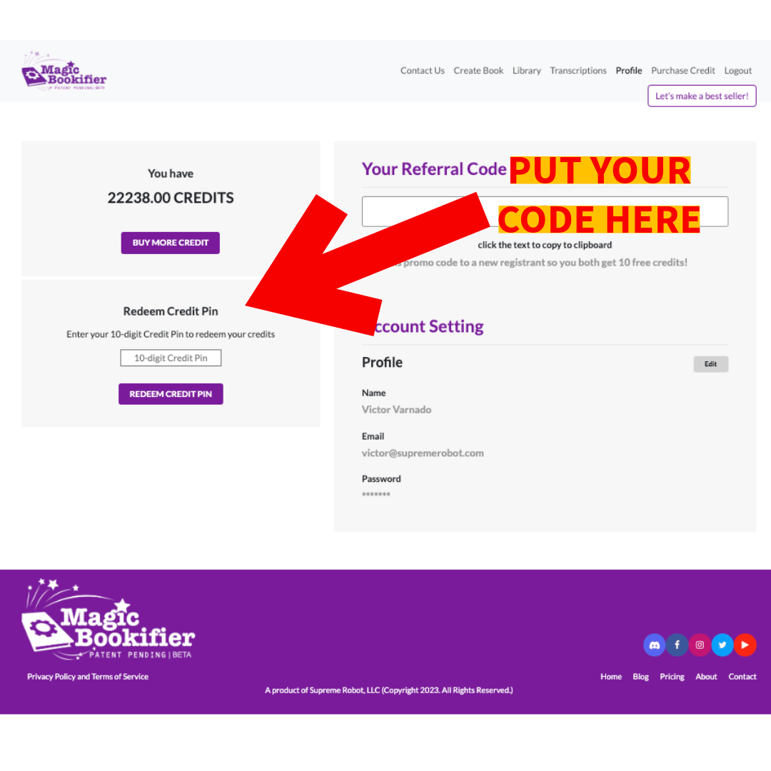 Put your code for free credits there!